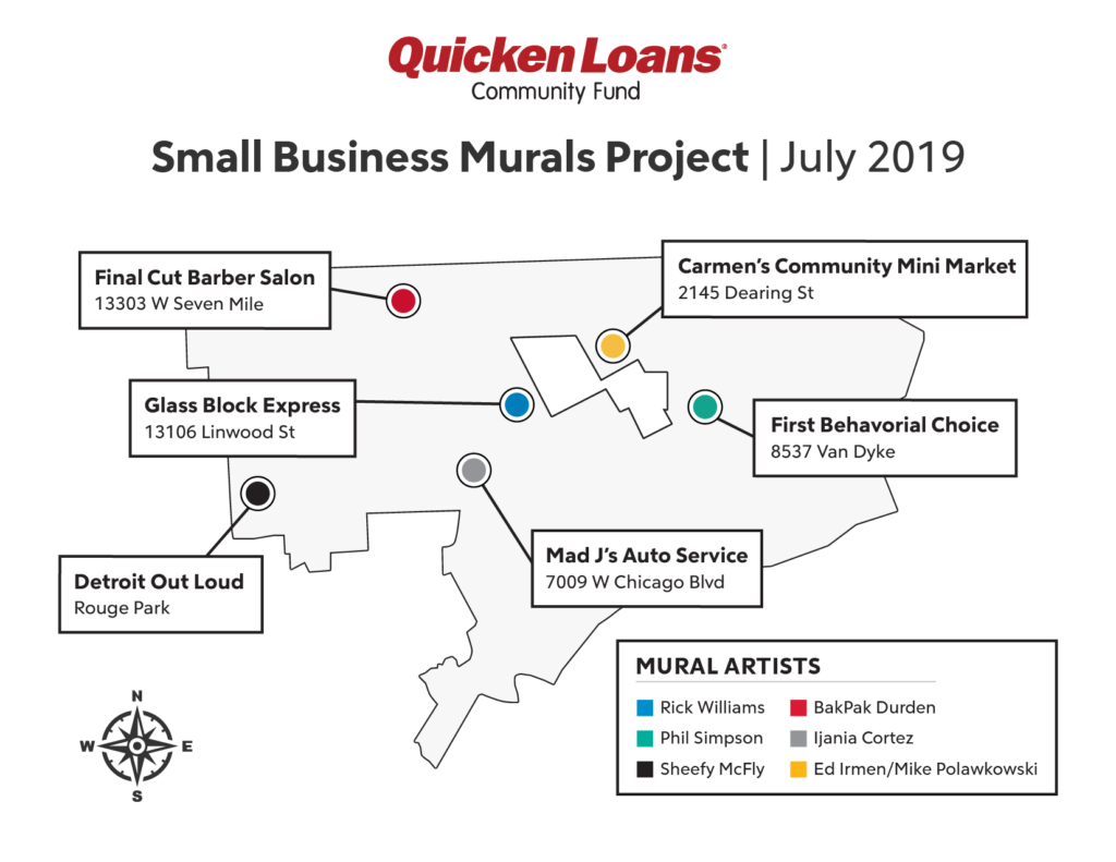 The Quicken Loans Small Business Murals Project is part of a larger philanthropic strategy to invest in public space activation, housing stability, entrepreneurship, education and employment and community sponsorships throughout its hometown of Detroit. Through its For-More-Than-Profit model, the Quicken Loans Community Fund brings together for-profit businesses and non-profit investments to improve Detroit and the other cities Quicken Loans calls home.