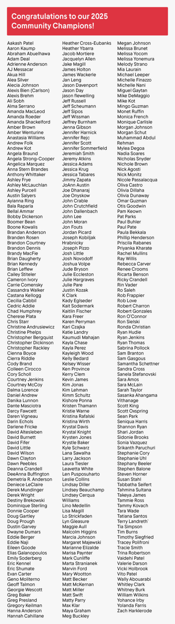 Congratulations to all our 2025 Community Champions — see the full list of honorees below!